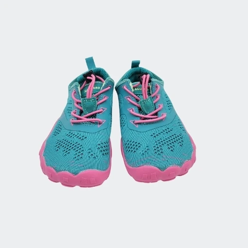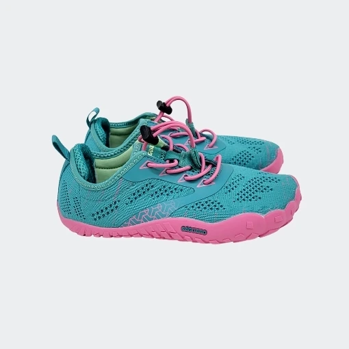 La Deportiva Barefoot Saguaro modelo SMART I Esmerald en color turquesa y rosa para adultos está diseñada para ofrecer una experiencia de caminar descalza, combinando comodidad, libertad y funcionalidad. Su suela fina, plana (drop cero) y extremadamente flexible favorece el movimiento natural del pie y mejora el equilibrio corporal.