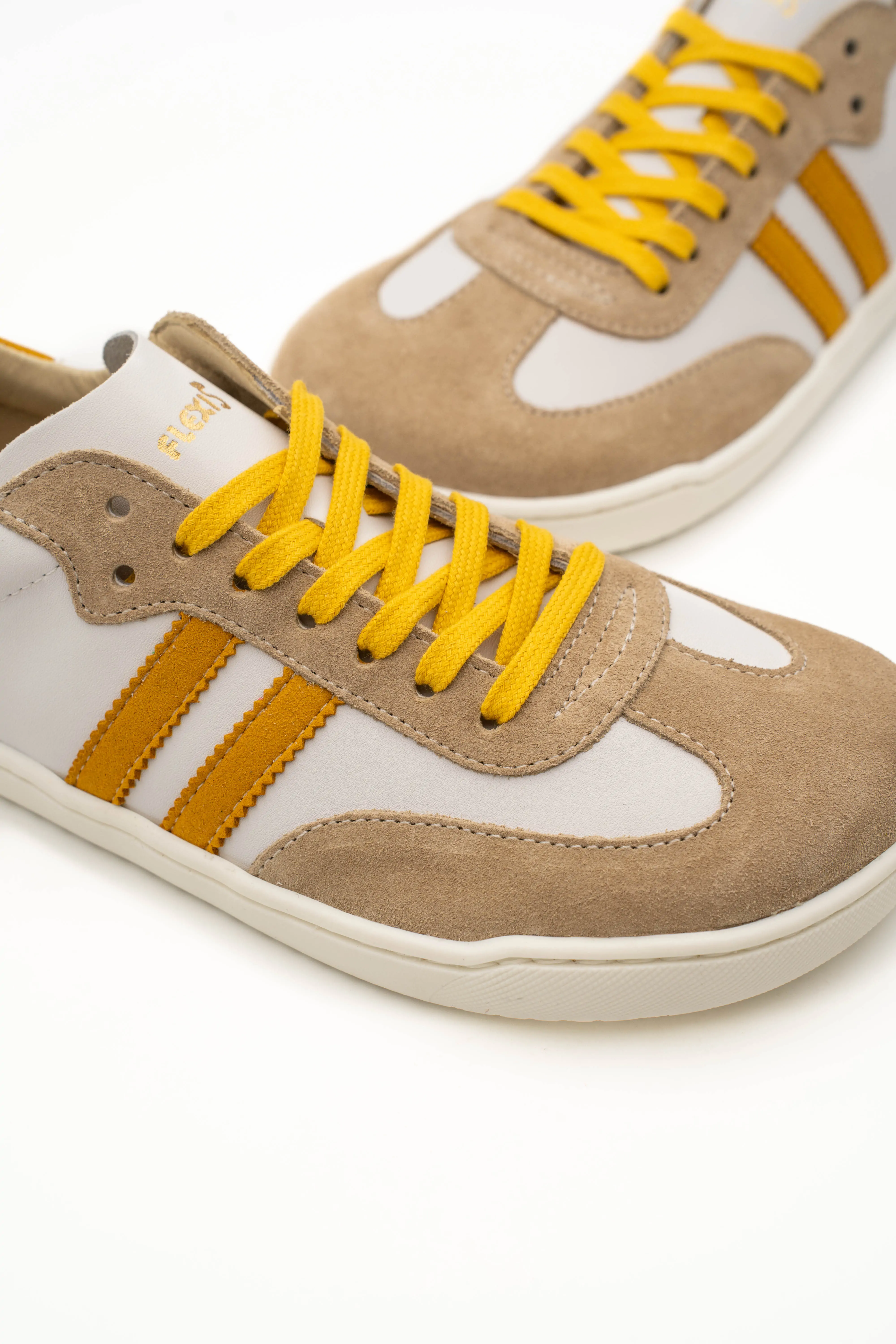 Fabricada en piel suave y transpirable, con acabados de calidad, esta zapatilla mantiene la esencia del calzado minimalista: ligera, flexible y sin elementos que limiten el movimiento natural.
