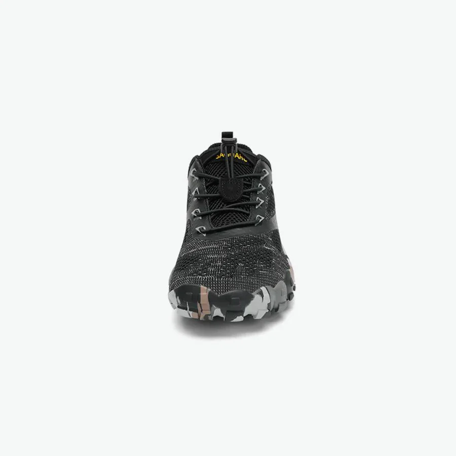 La Deportiva Barefoot Saguaro SMART II en negro camuflaje para adultos está diseñada para ofrecer una experiencia de caminar descalza, combinando comodidad, libertad y funcionalidad. Su suela fina, plana (drop cero) y extremadamente flexible favorece el movimiento natural del pie y mejora el equilibrio corporal.