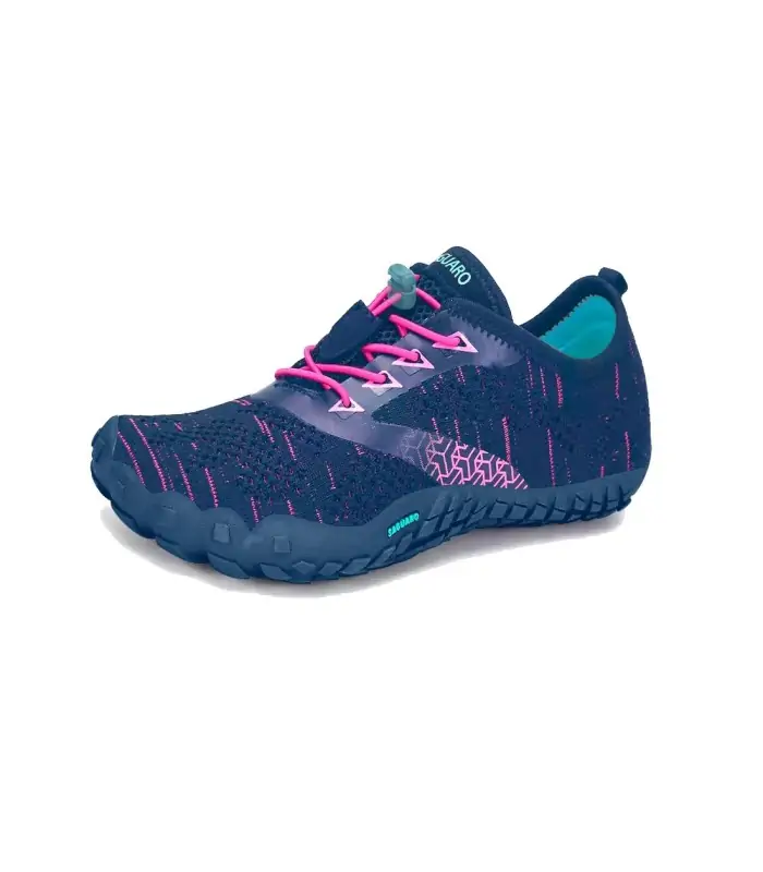 La Deportiva Barefoot de Saguaro SMART I en azul marino y rosa está diseñada para proporcionar una pisada natural y un desarrollo saludable del pie. Su diseño minimalista con suela flexible y materiales transpirables permite un movimiento natural, promoviendo equilibrio y estabilidad en los pequeños. Ideal para niños activos que buscan comodidad y protección sin renunciar a la sensación de libertad al caminar.