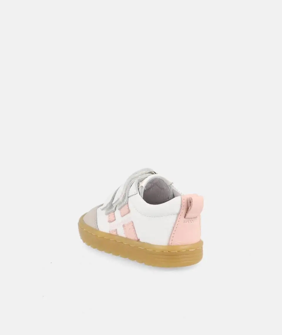- Confeccionadas en una suave piel de color Blanco con detalles en rosa, piel tanto por dentro como por fuera, se adaptan al pie con total suavidad, permitiendo una total libertad en cada movimiento.