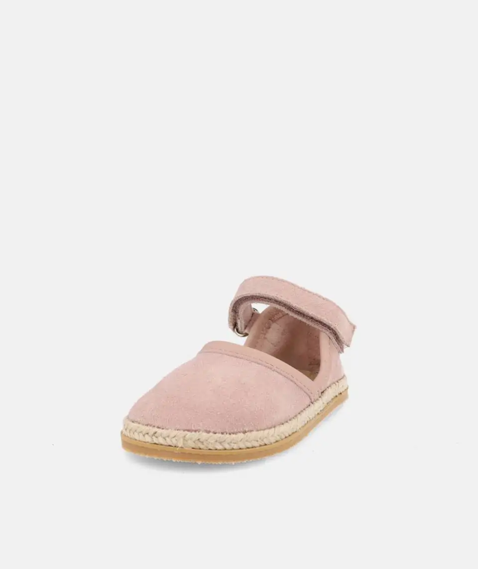Las sandalias tipo esparteras barefoot de piel serraje en color rosa para niñas de la marca Blanditos by Crio’s modelo Mahon son ideales para eventos y ocasiones especiales.