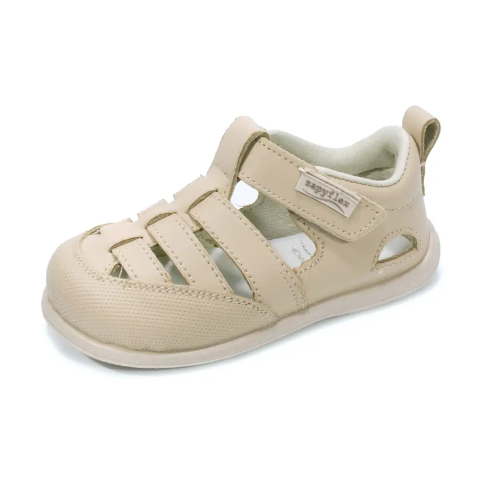 La sandalia respetuosa de Zapyflex en piel en color arena es una opción ideal para acompañar el desarrollo natural del pie infantil. Fabricado en Elche (Alicante) con materiales de calidad, este modelo combina comodidad, ergonomía y diseño funcional, pensado para el uso diario de los más pequeños.