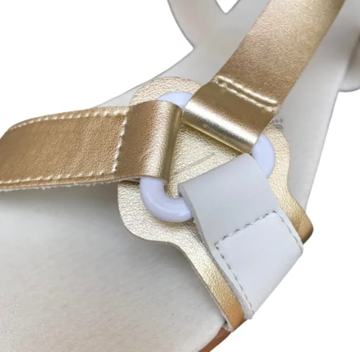 - Estilo natural: Combinación blanco y dorado perfecta para cualquier look veraniego.