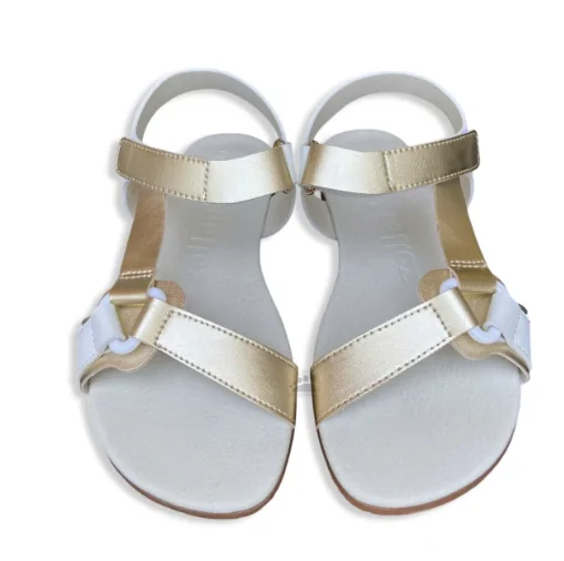 La sandalia Coqueflex Barefoot modelo 1445 Júpiter en color blanco y oro está diseñada para ofrecer máxima sensación de libertad, respetando la forma natural del pie. Su estructura abierta y ligera la convierte en una opción ideal para primavera y verano, combinando confort y estilo sin comprometer la salud del pie.