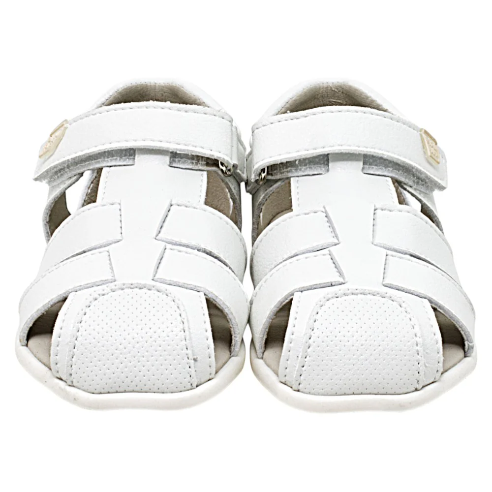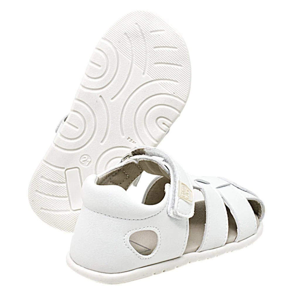 Fabricadas con materiales 100 % veganos y transpirables, incorporan cierres de doble velcro que facilitan un ajuste rápido y seguro, adaptándose al crecimiento y a diferentes tipos de empeine. Su color blanco neutro y versátil las convierte en una opción práctica y combinable para el día a día.
